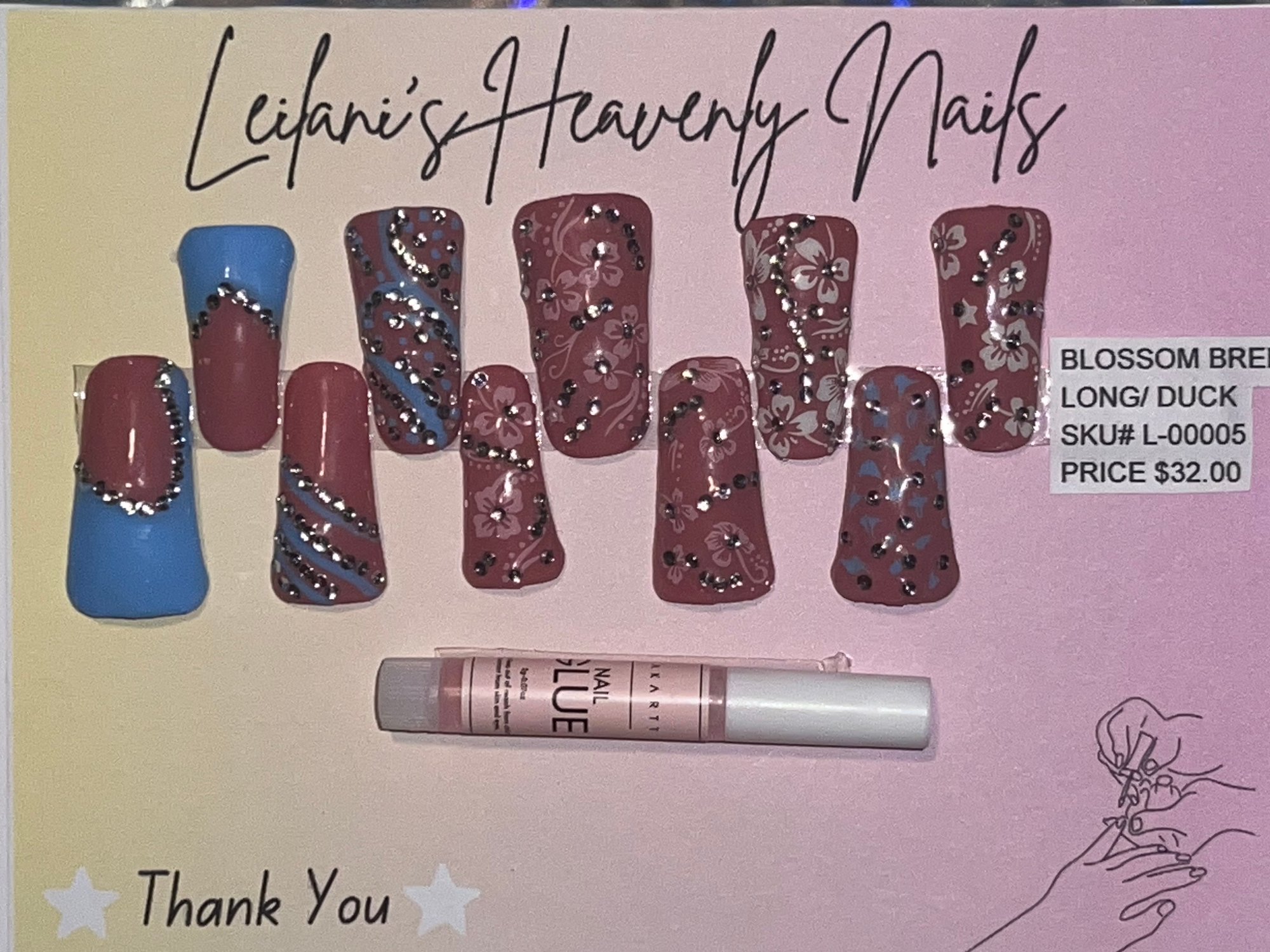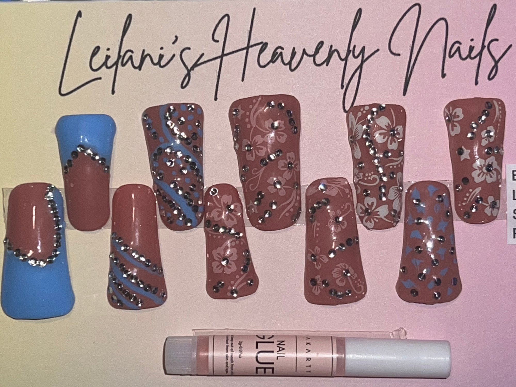 Set includes 10 press on nails, 1 nail glue, 1 prep kit, and a small gift of appreciation💕