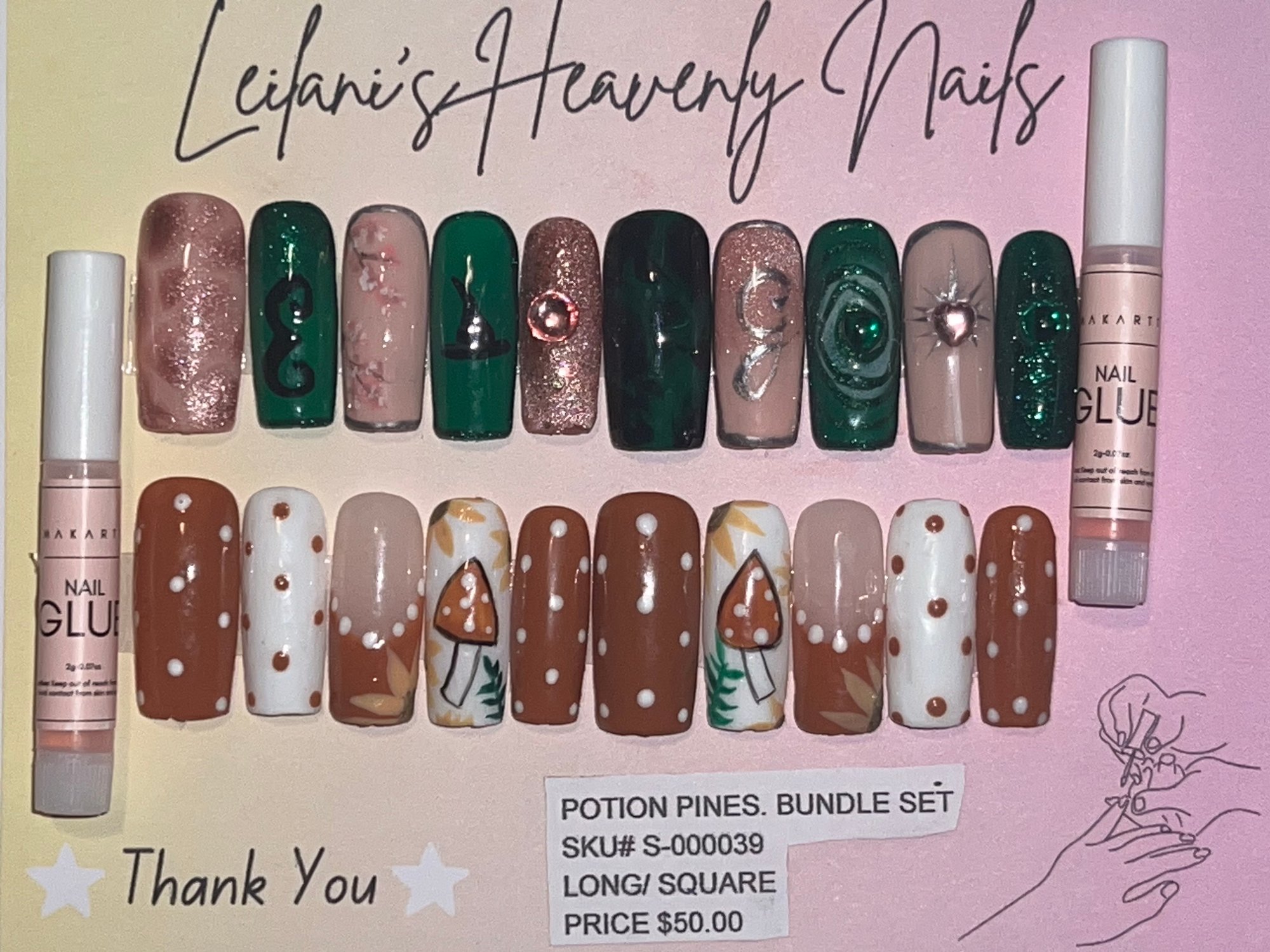 Get ready to enchant with this magical collection features two stunning sets of long, square-shaped press-on nails.