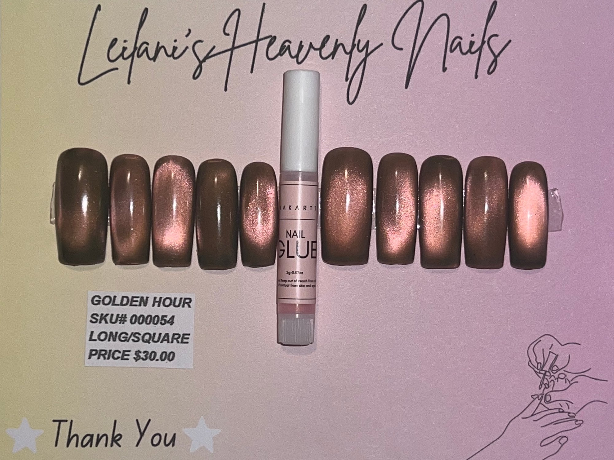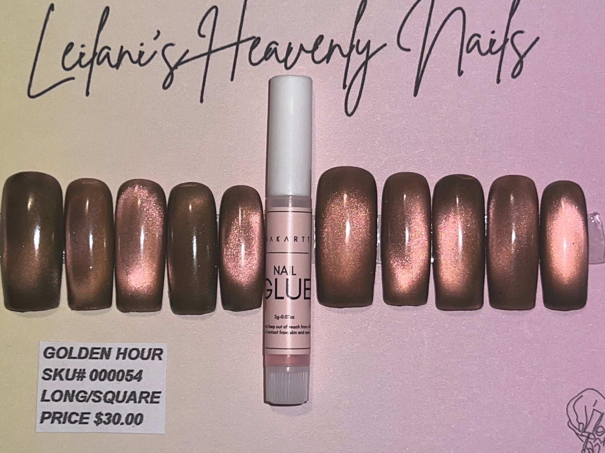 This luxurious set boasts a rich mocha brown base that transforms under the light, revealing a shimmering, rose-gold streak that moves with your hand. It's the ultimate warm and elegant glow, just like the sky at dusk! 🤎💖