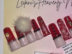 Sleigh your holiday style with our fabulous "North Pole Chic" press-on nails! These extra festive 2XL long/duck-shaped nails are the ultimate statement piece for Christmas.