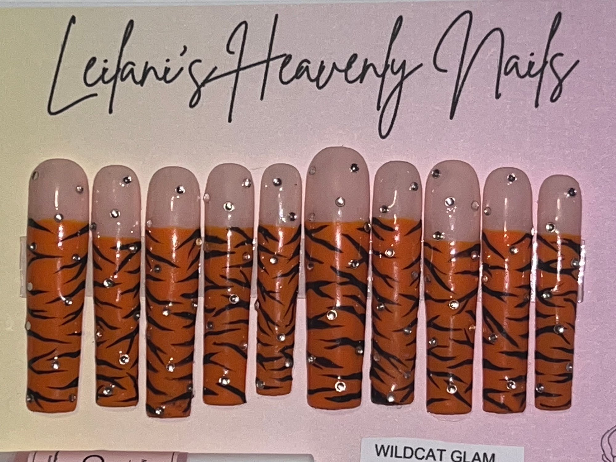 Unleash your fierce side with our stunning "Wildcat Glam" press-on nails! These XL long square-shaped nails are designed for those who love to make a bold and stylish statement.